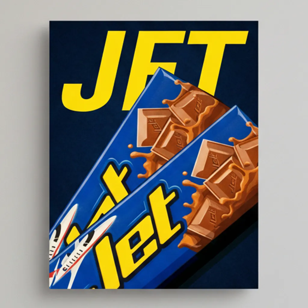 Chocolatina Jet reinterpretada como arte decorativo con sabor a infancia.