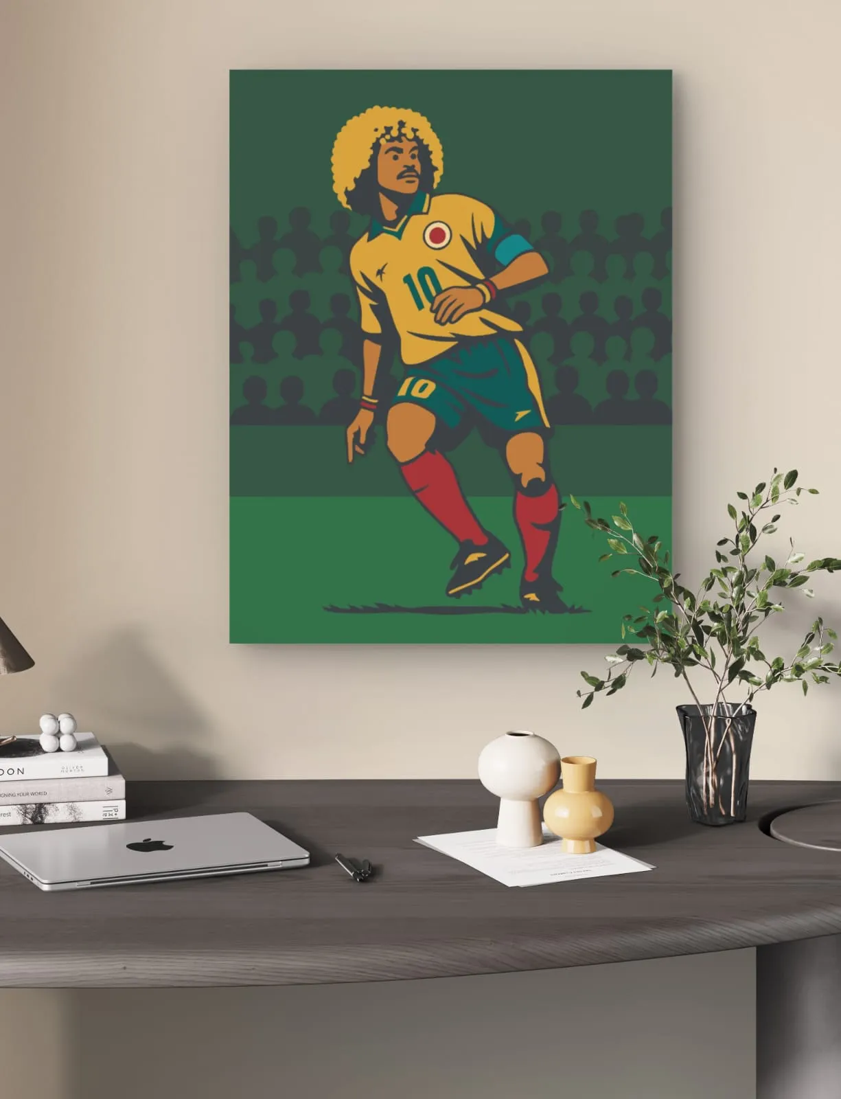 El Pibe Valderrama convertido en arte decorativo colombiano con clase.
